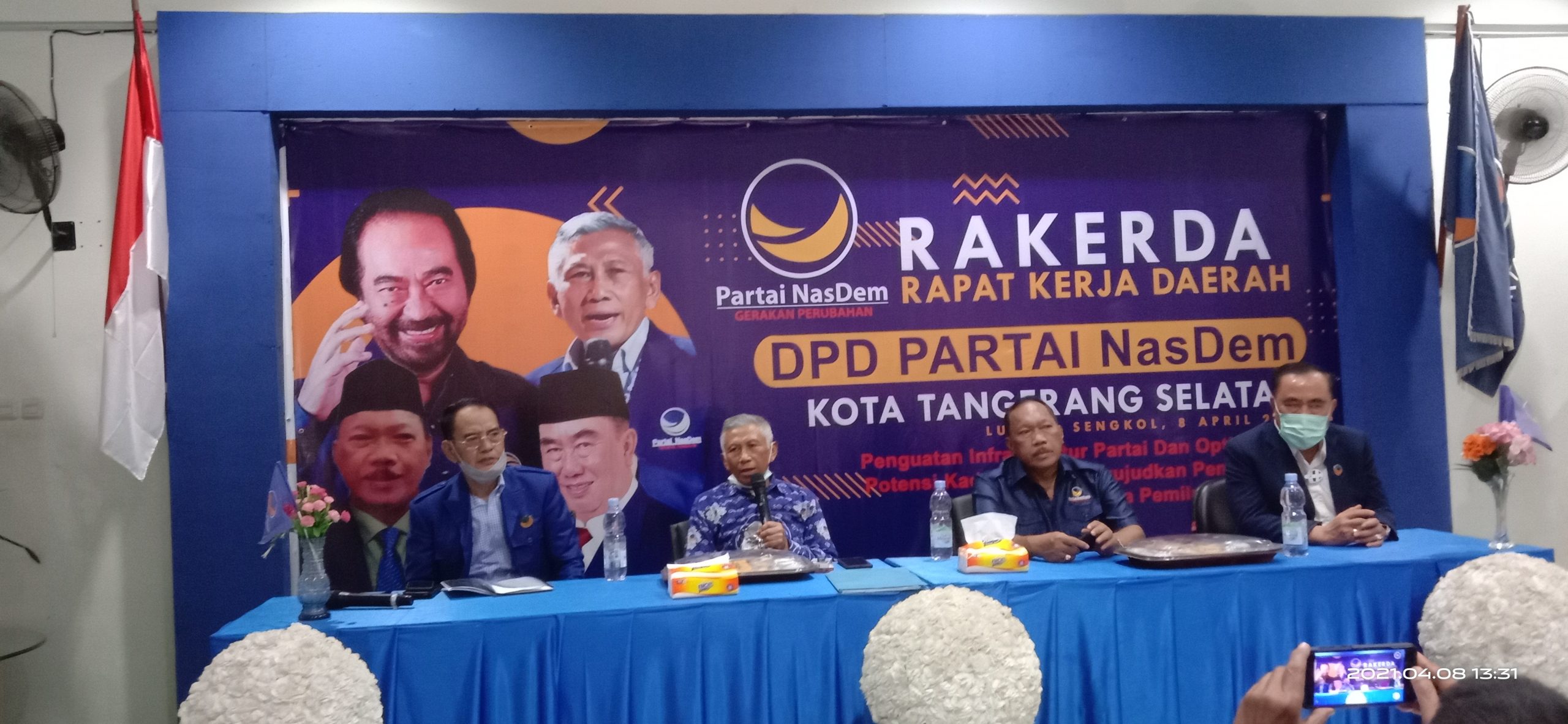Tangerang Selatan,Persindonesia.com-Rapat Kerja Daerah (Rakorda) Partai Nasdem Kota Tangerang Selatan, berlangsung di Lubana Park Sekretariat Bersama Partai Nasdem,Jalan Lingkar Selatan Komplek Lubana Sengkol No.1 Kelurahan Muncul Kecamatan Setu Kota Tangerang Selatan.kamis (08/04/2021)