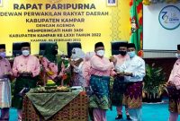 Sidang Paripurna DPRD Kampar dalam rangka Hari Jadi Kabupaten Kampar ke 72 ditutup dengan pemotongan tumpeng oleh Bupati Kampar dan diberikan kepada Gubernur Riau Drs H.Syamsuar M.Si, mantan Gubernur Riau Brigjend TNI (Purn) H.Saleh Djasid mewakili tokoh masyarakat Kabupaten Kampar serta 3 Pimpinan DPRD Kampar Toni Hidayat SE, Repol S.Ag dan H.Fahmil SE.MM.