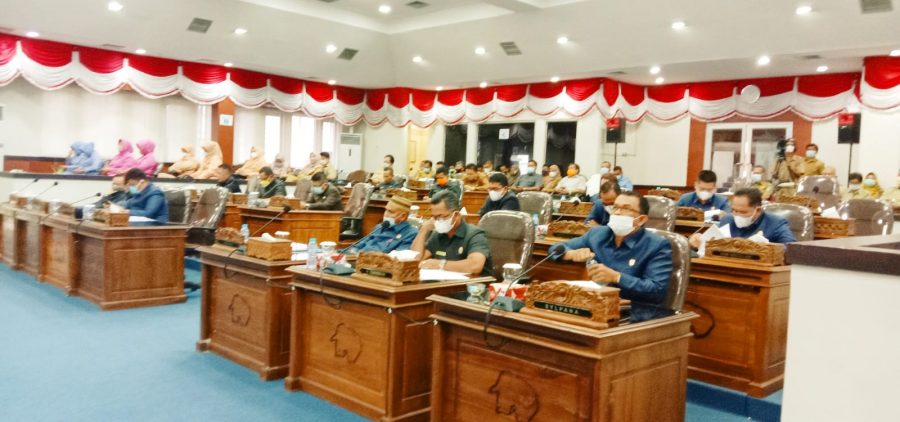 Belitung – Rapat Paripurna IX Masa persidangan I Tahun Sidang 2020-2021 Tentang Penyampaian Kata Akhir Fraksi Fraksi DPRD Kabupaten Belitung atas Penyampaian Rancangan APBD Kabupaten Belitung Tahun Anggaran 2022, Senin 29/11/2021 sekira pukul 10.00 WIB dihadiri Mayor Arm Frengki Triwibowo Danramil 414-01/ Tanjungpandan.