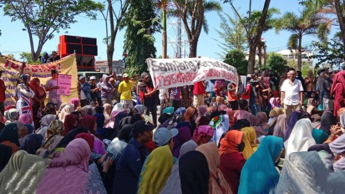 aksi demonstrasi ini tetap berlangsung dan sempat terjadi kericuhan antara petugas kepolisian dengan massa aksi yang memaksa untuk masuk ke Kantor Pemkab Sampang.