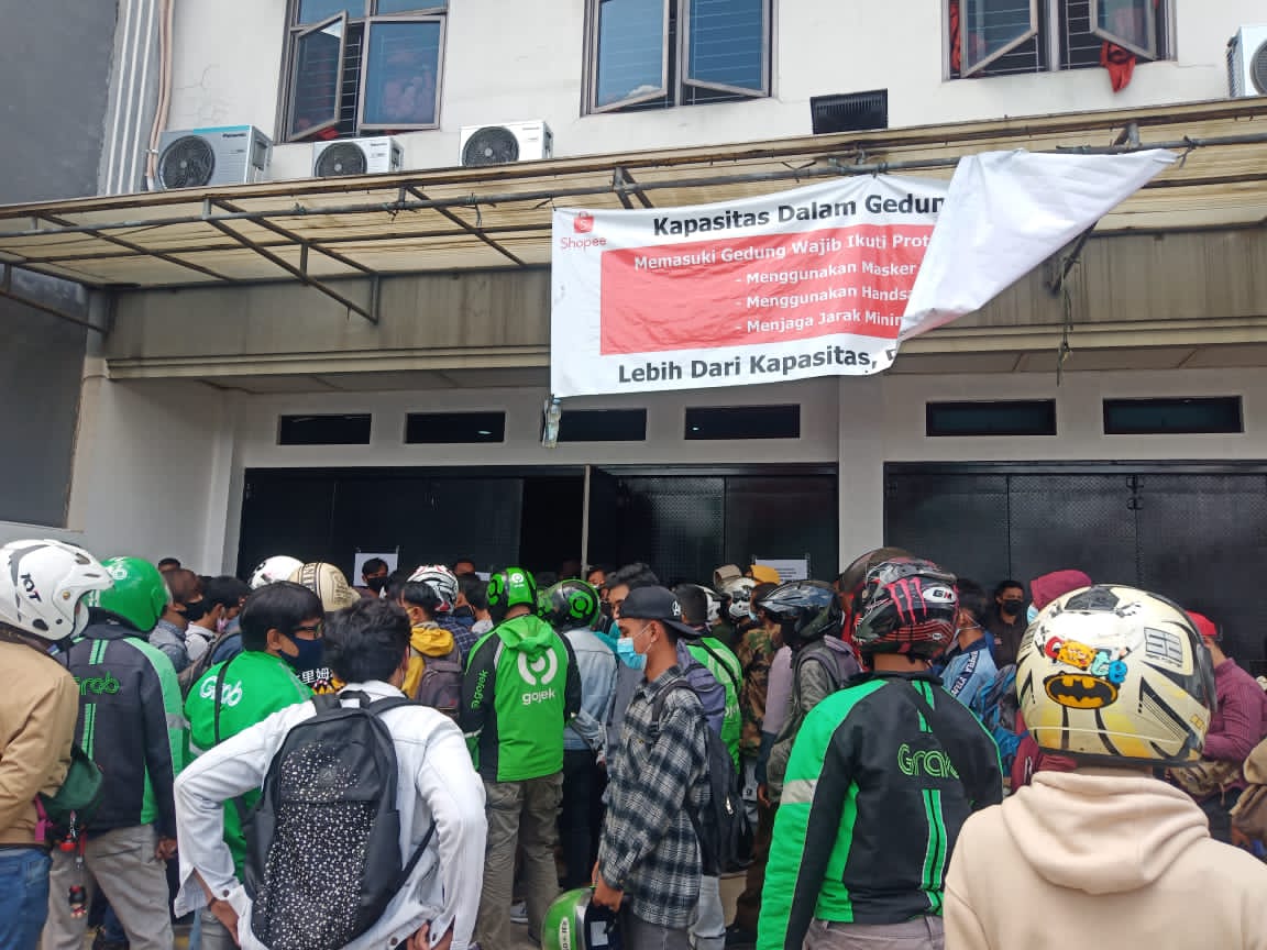 Tangerang Selatan,Persindonesia.com-Ratusan orang yang akan melamar di Shopee Food membludag hingga membuat macet jalan raya serpong dan menimbulakan kerumunan di depan ruko kantor tempat perekrutan.