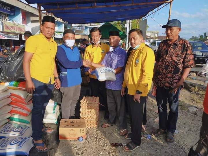 KUOK- Ketua Partai Golkar, Repol bersama para kader kembali mengunjungi korban kebakaran di Pasar Kuok, Jumat (22/1/2021) sore. Setelah sebelumnya, di pagi hari pada saat kejadian terjadi Repol juga telah datang ke lokasi guna memantau proses evakuasi serta memastikan proses pemadaman yang dilakukan oleh petugas pemadam secara cepat.