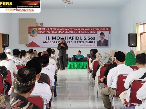 Jember,Persindonesia.com – Anggota DPRD Kabupaten Jember, H. Moh Hafidi, S.Sos., menggelar kegiatan Reses Masa Sidang Ketiga Tahun 2025, di SMK Islam Bustanul Ulum, Dusun Rowo Desa Pakusari, Kecamatan Pakusari, Kabupaten Jember, Provinsi Jawa Timur, sebagai wujud tanggung jawab moral dan politik kepada masyarakat di daerah pemilihannya. Kamis (4/12/2025).