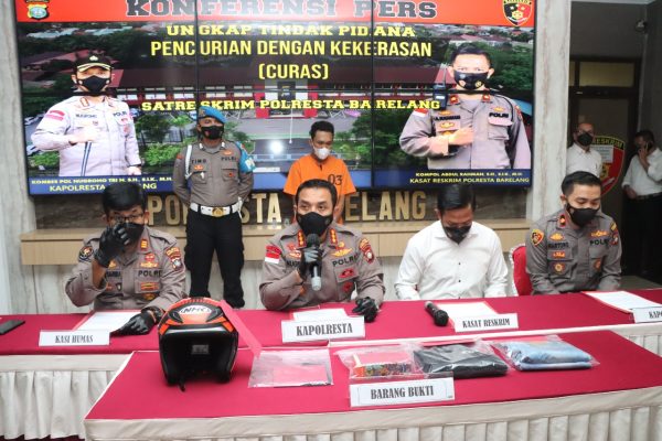 Saat jumpa pers Kapolresta Barelang Kombes Pol Nugroho Tri N, membenarkan telah menangkap pelaku begal diwarung warga, kejadian tersebut terjadi sekira pukul 06.35 wita. “Saat itu tersangka mendatangi warung korban dan berpura-pura membeli rokok. Saat itu korban sedang memegang handphone saat itu terangka langsung merampas hanphone korban sehingga terjadi Tarik menarik dan berakgir korban berteriak maling,” terangnya. Senin (19/09/2022).
