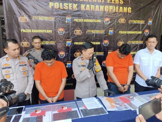 Kompol Risky Ferdian C Kapolsek Karang pilang didampingi Iptu Kanit Reskrim Iptu Cendy menjelaskan, mereka menampung berbagai merek HP yang diduga dari hasil kejahatan dan kemudian menjual lagi melalui media sosial FB dan WA.