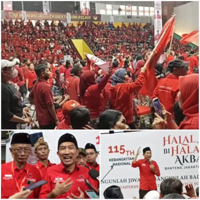 Persindonesia.com Jakarta, Bertempat di GOR Otista Jakarta Timur, pada Sabtu 20 Mei 3023 Dewan Pimpinan Cabang PDI Perjuangan Kota Jakarta Timur ( DPC PDIP Jaktim) bersama pengurus PAC, Ranting, dan Simpatisan partai mengikuti acara Halal Bihalal Akbar Banteng Jakarta Timur. Dengan tema “Bangunlah Jiwanya Bangunlah Badannya untuk Indonesia Raya”, sebagai upaya membangun semangat perjuangan untuk meraih suara terbanyak di Jakarta Timur guna meraih kemenangan di Pemilu 2024, serta Kemenangan Capres Ganjar Pranowo menuju RI 1.