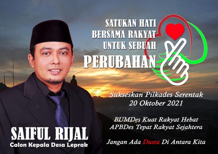 Saat ditanya awak media, Rijal asli kelahiran Leprak ini dengan sederhana menuturkan, “Saya hanya ingin berbuat untuk masyarakat Leprak dengan sepenuh hati mas, Kepala Desa itu pelayan masyarakat jadi apabila Allah meridhoi dan masyarakat memilih saya, tentunya sebagai pelayan masyarakat saya akan melayani dengan hati” tuturnya