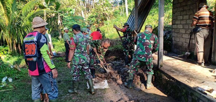 Rumah Warga Tertimpa Longsor, Personel Koramil 1617-03/Melaya Bersama Masyarakat Lakukan Pembersihan