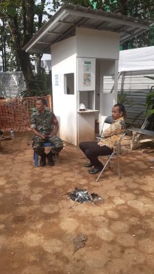 Serda Mu’ajat Sujana Babinsa Kelurahan Cireundeu Kecamatan Ciputat Timur melaksanakan kegiatan Komsos dengan Security UMJ Di Jalan Poncol Rt 005/002 Kelurahan Cireundeu Kecamatan Ciputat Timur Kota Tangerang Selatan.