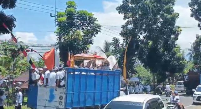 Persindonesia.com – Jembrana. Ribuan kendaraan pemudik yang menuju Pelabuhan Gilimanuk harus berbagi ruang dengan iring-iringan umat Hindu yang melaksanakan upacara Melasti di jalur utama Denpasar–Gilimanuk, Kabupaten Jembrana, Bali, Senin (16/3/2026). Tradisi penyucian diri menjelang Hari Suci Nyepi itu berlangsung bersamaan dengan padatnya arus mudik menuju Pulau Jawa.