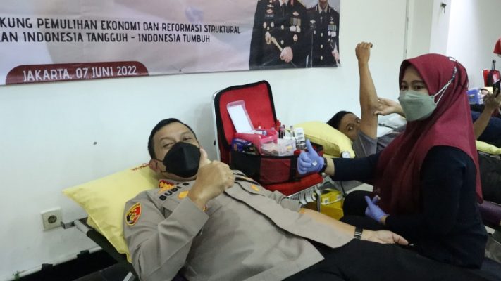 Persindonesia.com JAKARTA|Menyambut Hari Ulang Tahun (HUT) Bhayangkara ke-76 Tahun, Polres Metro Jakarta Timur gelar kegiatan donor darah dengan menggandeng Unit Donor Darah Palang Merah Indonesia Kota Jakarta timur yang digelar di Aula Lantai 6 Polres Metro Jakarta Timur , Selasa (07/06/2022).
