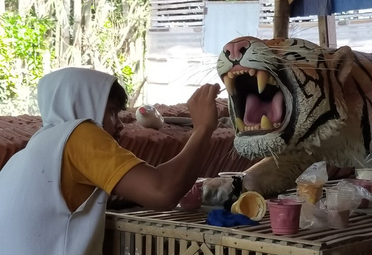 Seperti saat proses membuat patung atau replika sang raja rimba yang rencananya akan Ia bandrol dengan harga Jutaan rupiah, pasalnya pada tahun 2017 Ia pernah mengerjakan replika binatang yang sama kala berada di Jakarta dan karyanya mampu terjual dengan harga Rp. 25 Juta, namun sayangnya modal awal pembuatan bukan miliknya, alhasil Adi (25) hanya pasrah menerima upah pengerjaanya saja.
