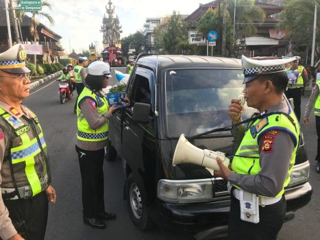 Sat Lantas Polres Klungkung Lakukan Pembagian Brosur dan Stiker