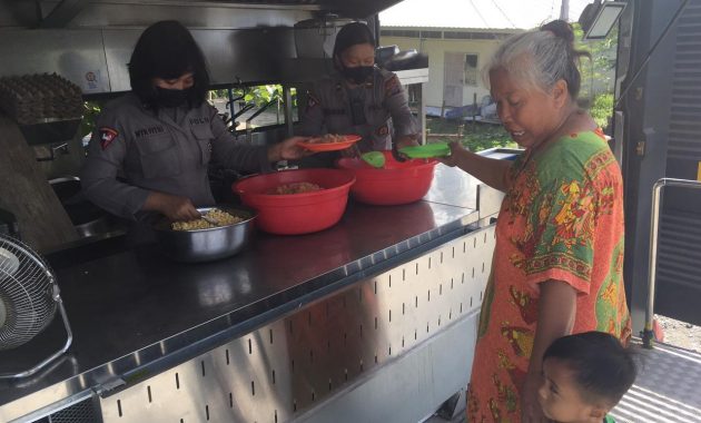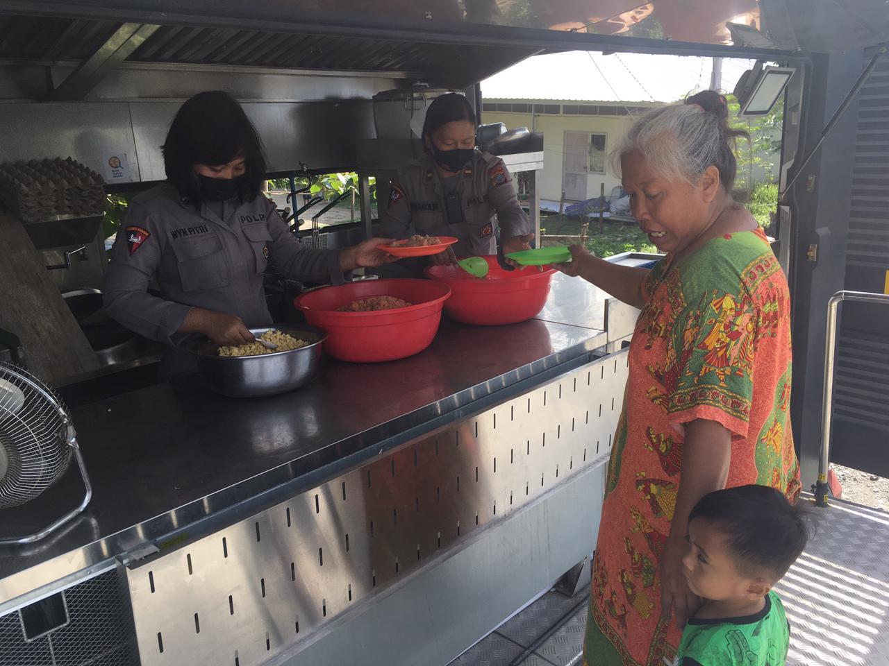 “Untuk di Posko ini kami mengolah makanan tiga kali, untuk makan pagi, siang dan malam” Ujar Ipda Karolin.