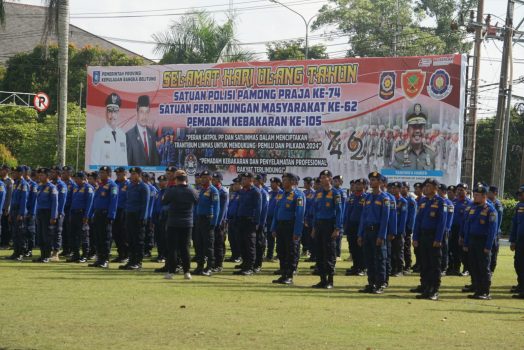 Persindonesia.com Babel, 1 Pleton Personel Satbrimobda Kep. Babel mengikuti upacara peringatan HUT Satpol PP ke-74, Satlinmas ke-62 dan Pemadam Kebakaran ke-105 tahun 2024. Penjabat (Pj) Sekretaris Daerah (Sekda) Provinsi Kepulaun Bangka Belitung (Kep. Babel) Fery Afriyanto menjadi Inspektur Upacara (Irup) pada Upacara tersebut di Lapangan Upacara Kantor Gubernur, Senin (27/5/24).