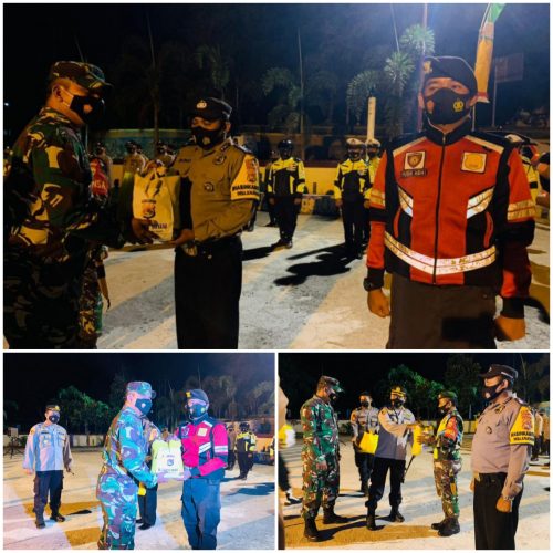 ” Dalam kegiatan patroli skala besar ini saya dan Dandim telah menyiapkan paket sembako untuk diberikan kepada masyarakat yang dianggap layak untuk menerimanya dengan harapan dapat sedikit membantu meringankan beban masyarakat di tengah pandemi ini, “pungkas Kapolres.