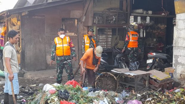 Sebanyak 10 personel dari Koramil 05/Ciputat di bawah pimpinan Letda Inf Nurzimal dikerahkan sejak pagi untuk mengangkat tumpukan sampah yang menimbulkan bau menyengat dan belatung di sejumlah titik pasar.
