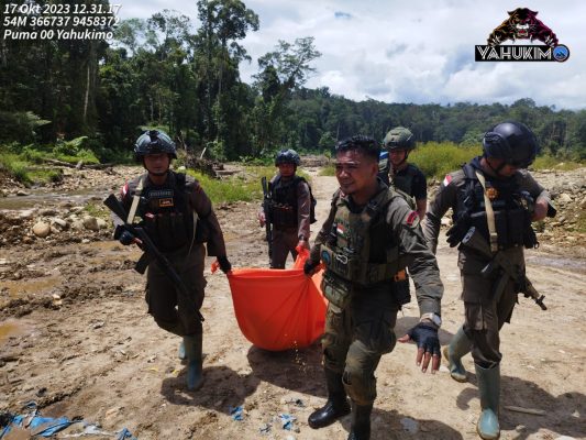 Persindonesia.com Yahukimo. Pasca kejadian penembakan dan pembunuhan warga oleh KKB di Kali I Distrik Seradala, Kabupaten Yahukimo pada Senin, 16/10/2023. Satgas Damai Cartenz menerjunkan personelnya untuk mengevakuasi korban penembakan KKB, baik korban selamat maupun korban meninggal dunia (Selasa, 17/10/2023).