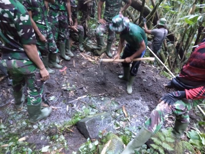 Amlapura Bali – Di samping pembangunan jembatan, dan pembuatan senderan jembatan, yang dilaksanakan oleh Satgas TNI Manunggal Membangun Desa (TMMD) Ke- 111 Kodim 1623/Karangasem, hari ini Minggu (20/06/2021) mulai dilaksanakan kegiatan sasaran tambahan berupa pembangunan bak penampungan air bersih dengan ukuran panjang 4 meter, lebar 2 meter dan tinggi 2 meter dengan lokasi di Desa Adat Bukit Galah, Banjar Dinas Sogra Desa Sebudi, Kecamatan Selat, Kabupaten Karangasem.