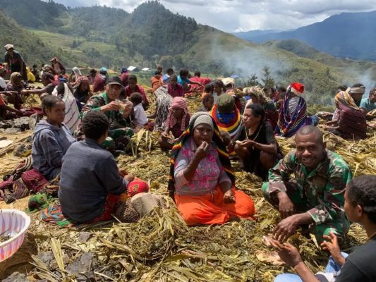Persindonesia.com Lanny Jaya — Satgas Yonif Mekanis 203/AK terus menjalin kebersamaan dengan masyarakat Distrik Mukoni, Kabupaten Lanny Jaya, dengan melaksanakan acara tradisi Bakar Batu sebagai bentuk doa bersama serta ucapan rasa syukur, Selasa (28/03/2023).