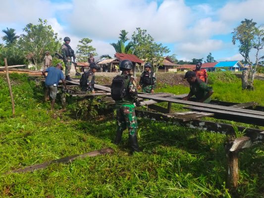 Mengetahui hal itu, Danpos Batas batu, Kapten Chk Idham Cholid bersama anggota pos dan masyarakat Mumugu bergerak cepat memperbaiki jalan tersebut dengan mengganti Kayu dan papan yang lapuk. Kegiatan tersebut dilakukan oleh satgas sebagai bentuk kepedulian terhadap masyarakat Mumugu agar dapat beraktifitas dengan lancar.