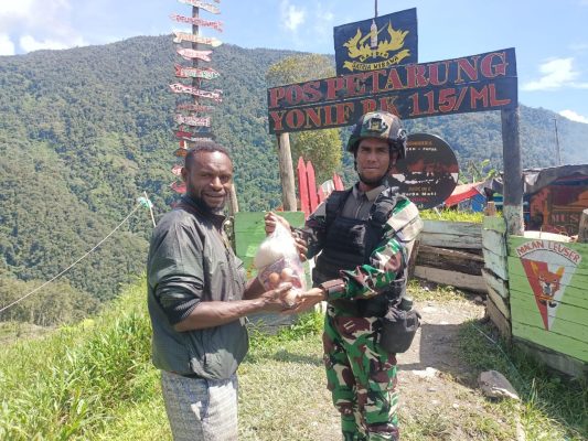 Persindonesia.com (Puncak Jaya). Satgas RK 115/ML yang bertugas di Pos TNI Tinolok, Puncak Jaya Papua, memberikan bantuan sembako kepada masyarakat Kampung Tinolok, diserahkan oleh Danpos Tinolok Lettu Inf Ferri Nurgian Mi’raj bersama anggotanya, hari Jum’at (5/5/2023).