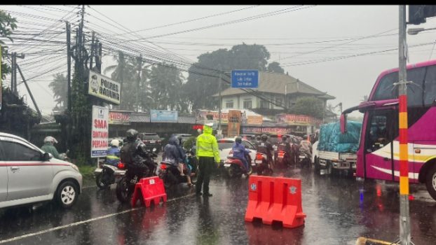 Mangupura, persindonesia.com – Meski hujan deras mengguyur wilayah Kabupaten Badung, tidak menyurutkan semangat Personel Satuan Lalu Lintas Polres Badung untuk mengatur kendaraan yang melintas di Jalur utama dari jalan raya sempidi hingga jalur Mengwitani Kecamatan Mengwi, Kabupaten Badung, Bali. Selasa, (11/2/25).