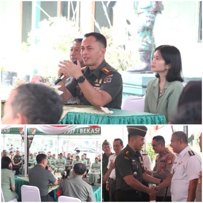 Persindonesia.com Bekasi, Kodam Jaya, Kota Bekasi – Komandan Kodim (Dandim) 0507/Bekasi Kolonel Arm Rico Ricardo Sirait, B.S., M.MDS., bersama Ketua Persit Kartika Chandra Kirana (KCK) cabang XXI Dim 0507 Bekasi Ny. Fitri Rico Ricardo mengunjungi Koramil 01/Kranji untuk bertemu aparatur tiga Pilar, Rabu (2/8/2023).
