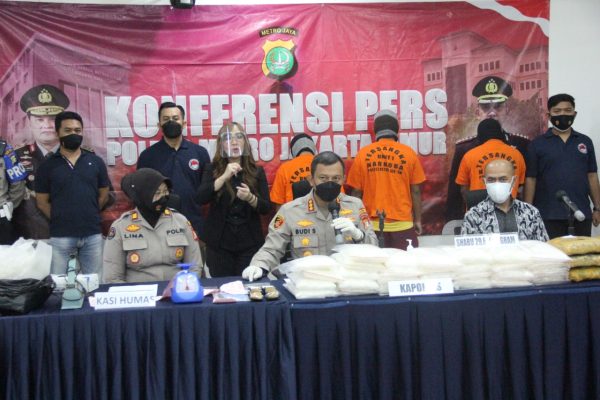 Kapolres Metro Jakarta Timur Kombes Pol. Budi Sartono dalam konferensi persnya yang didampingi Kasat Narkoba AKBP. Dr Agung Wibowo dan Kasie Humas Polres Metro Jakarta Timur AKP. Lina Yuliana mengatakan, “Satuan Narkoba Polres Metro Jakarta Timur berhasil mengungkap dua kasus tindak pidana narkoba peredaran ganja beserta sabu dengan skala besar di wilayah Jakarta.