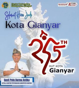 Segenap Keluarga Besar Kantor Pertanahan Kabupaten Gianyar mengucapkan Selamat Hari Ulang Tahun ke-255 Kota GianyarTim RedaksiApril 19, 2026April 19, 2026MEDIA PERS INDONESIA Prasada Bhakti Ulangun. Semoga Gianyar senantiasa jaya, masyarakatnya damai sejahtera, dan keluhuran nilai-nilai warisan leluhurnya tetap lestari. Posting TerkaitWamen ATR/BPN Dorong Reformasi Layanan di Semarang, Tekankan Berkas Harus Tuntas Tanpa PenundaanMenteri ATR/BPN Tinjau Lahan Industri di Indramayu, Tegaskan Tidak Ganggu Sawah ProduktifMenteri Nusron Dorong Santri Kuasai STEM untuk Perkuat Peran dalam Kebijakan NegaraPersembahyangan Odalan Suci Tumpek Landep, Pegawai Kantor Pertanahan Gianyar Kusuk Perkuat Spiritualitas dan KinerjaPentingnya KKPR bagi Pelaku Usaha: Ini Tahapan dan Cara MengurusnyaPemkab Gianyar Kembalikan Sertipikat Aset untuk Penataan Status HukumPerkuat Sinergi, Kantor Pertanahan Gianyar Jajaki Kerja Sama dengan Koperasi Pegawai PemdaATR/BPN Siapkan Lahan untuk Hunian Vertikal dan Kota SatelitJangan LewatkanGubernur Koster dan Kapolri Lepas 11.000 Pelari, Wondr Kemala Run 2026 Sukses Angkat Sport Tourism BaliPeringati Hari Kartini, ILDI Badung Gelar Senam Line Dance dan Aksi SosialGerakan Sosial Badung Peduli di Kutuh, Salurkan Bantuan untuk Warga DisabilitasWamen ATR/BPN Dorong Reformasi Layanan di Semarang, Tekankan Berkas Harus Tuntas Tanpa PenundaanMenteri ATR/BPN Tinjau Lahan Industri di Indramayu, Tegaskan Tidak Ganggu Sawah ProduktifBOREG SURAN Surabaya Gelar Halal Bihalal, Pesta Seni Semalam Suntuk Perkuat Pelestarian Reog