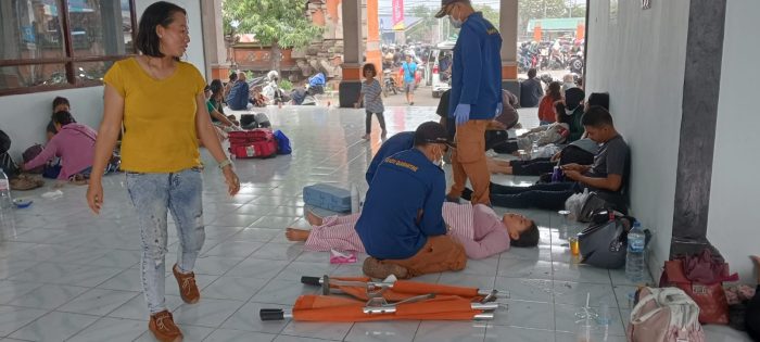 “Kebanyakan dilaporkan pingsan, tetapi setelah ditangani sebenarnya hanya kelelahan. Cuaca panas, antrean, serta perjalanan jauh dari Denpasar menjadi pemicunya,” jelasnya.