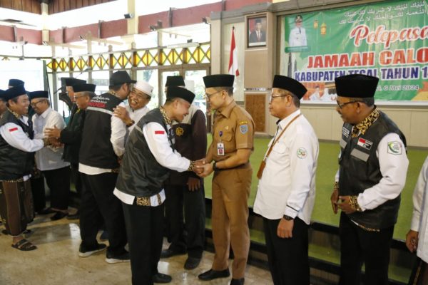Persindonesia.com Tegal Slawi – Sekretaris Daerah Kabupaten Tegal Amir Makhmud secara simbolis melepas keberangkatan 1.257 orang jemaah calon haji asal Kabupaten Tegal dari Pendopo Amangkurat, Senin (06/05/2024). Guna mendukung kelancaran ibadah haji ke tanah suci Mekkah ini, Pemkab Tegal telah menyiapkan 32 armada bus serta dua kendaraan kontainer untuk mengangkut perlengkapan para jemaah.