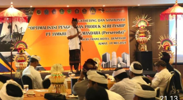 Denpasar – Sekretaris Daerah Provinsi Bali sekaligus Komisaris Utama PT. Jamkrida Bali Mandara (JBM) Dewa Made Indra mengajak pemerintah daerah di Bali, baik tingkat Provinsi dan Kabupaten untuk tetap menggunakan produk UMKM Bali yang dijamin oleh PT. JBM dalam produk Suretyship. Hal itu dikatakannya saat menjadi keynote speaker dalam acara Gathering dan Sosialisasi oleh PT. JBM dengan tema “Optimalisasi Penggunaan Produk Suretyship PT. Jamkrida Bali Mandara” bertempat di Four Star Trans Hotel, Renon, Denpasar, pada Jumat (19/5/2023).