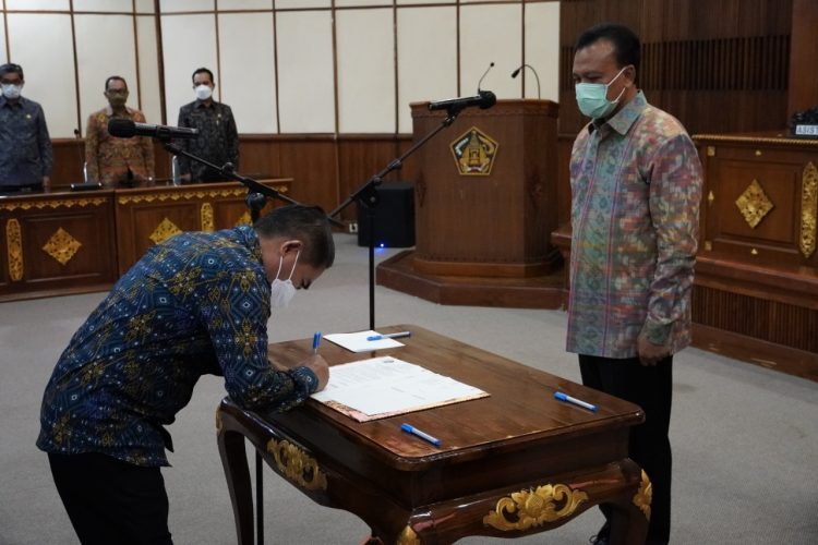 Denpasar – Gubernur Bali yang diwakili Sekretaris Daerah Provinsi Bali Dewa Made Indra melantik dan mengambil sumpah/janji anggota Badan Penyelesaian Sengketa Konsumen (BPSK) Kota Denpasar masa bhakti 2021-2026 di Ruang Wiswa Sabha Utama Kantor Gubernur Bali, Selasa (16/11/2021). BPSK Kota Denpasar beranggotakan 15 orang yang terdiri dari unsur pemerintah, konsumen dan pelaku usaha.