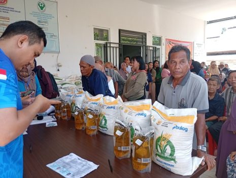 Proses penyaluran dilakukan secara tertib dan transparan, dimulai dari pengecekan data, pencocokan identitas penerima, hingga penyerahan bantuan beras dan minyak goreng secara langsung kepada masyarakat.