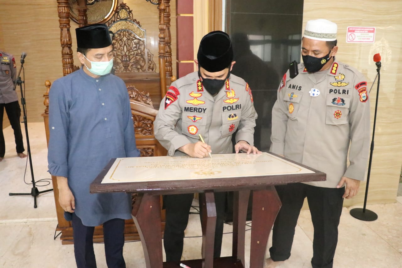 Dalam penyambutan ini, Kapolda Sulsel juga menanda tangani prasasti TPA (Tempat Pendidikan Al-Qur’an) yang telah dibangun oleh Satbrimob Polda Sulsel.