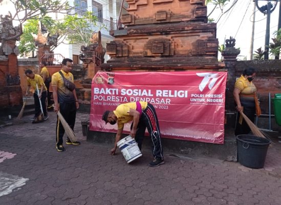 Denpasar – Menyambut Hari Bhayangkara ke 77 yang jatuh pada 1 Juli 2023, Polsek Denpasar Timur (Dentim) melaksanakan kegiatan Bakti Sosial Religi yang bertempat di Areal Pura Pesawan Agung, Desa Adat Sumerta, Jln. Drupadi, Desa Sumerta Kelod, Denpasar Timur, Sabtu (17/06/2023) pukul 07.00 wita.