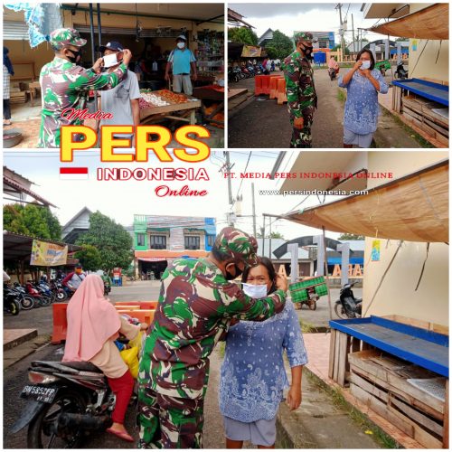 KELAPA KAMPIT — Dalam upaya menegakkan disiplin protokol kesehatan di wilayah Kelapa Kampit guna memutuskan mata rantai penularan Covid-19, Anggota Koramil 414-05/Kelapa Kampit Serda Romdloni, Minggu 20/06/2021 melaksanakan himbauan protokol kesehatan dan pembagian masker kepada masyrakat bertempat di Pasar Kelapa Kampit Kecamatan Kelapa Kampit.