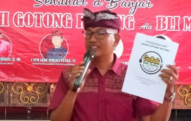 Dengan penuh semangat, I Nyoman Gede Sumara Putra,S.T., pada kesempatan tersebut menjelaskan, “Gotong Royong sangat bermanfaat disemua bidang kehidupan tak terkecuali dalam bisnis, sehingga kita akan mendapatkan pandangan baru yang kemungkinan besar dapat mengembangkan bisnis dan pada akhirnya akan memberikan inspirasi tentang langkah yang tepat untuk mengembangkan bisnis yang kreatif, cerdas dan inovatif. Gotong Royong adalah salah satu solusi yang tepat untuk menyelesaikan masalah dalam membangun sebuah usaha yang biasanya terkendala dalam modal,waktu,produk dan lain-lain. Dengan gotong royong kita akan memiliki hubungan atau koneksi yang luas sehingga usaha atau bisnis bisa berjalan dengan baik dan berkembang, untuk itu kita menawarkan sebuah konsep gotong royong melalui usaha kuliner “GoBak” yaitu sebuah usaha kuliner makanan babi guling khas Bali yang dibuka dengan slot mulai 500 ribu, kita akan mendapatkan kerjasama sebuah usaha yang nantinya akan mendapatkan income serta laporan keuangan yang transparan”,ucap Bli Mangde.