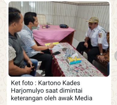Saat dimintai keterangan oleh media kades Harjomulyo Kartono, Menyampaikan bahwa masalah ini sudah beberapa kali menempuh jalan mediasi antar warga namun tidak ada titik temu, Bahkan Kartono juga sempat diperkarakan oleh pihak pertama.