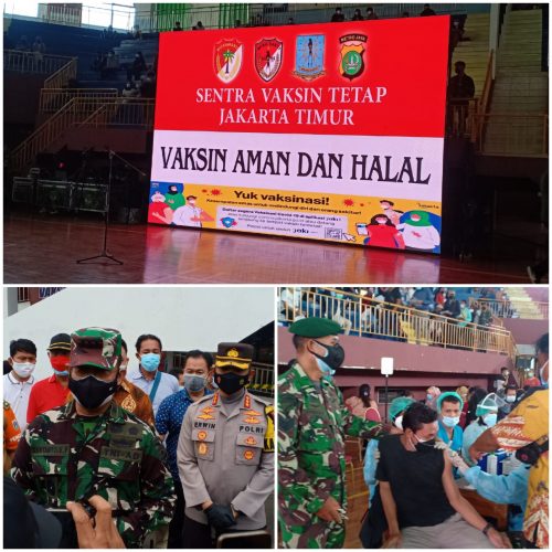 Kodim 0505/Jakarta Timur, Persindonesia.com Pelaksanaan Vaksinasi penebalan dan Nakes Puskes terpusat selama 2 hari (Sabtu/Minggu) dengan kuota 10000 (sepuluh ribu) dengan pelaksana Kakesdam Jaya Kol Ckm dr.Abdul Alim, SppB, Dinas kesehatan dan Bidokkes Polres Metro Jakarta timur bertempat di GOR Ciracas Jln. Raya Bogor km 25 – 26 Kelurahan Ciracas Kecamatan Ciracas, Sabtu (10/07/21).