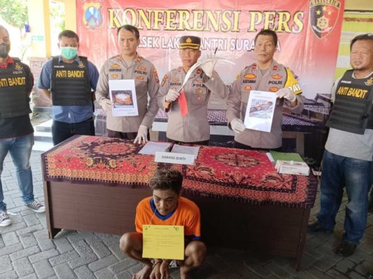teman korban dan mengambil HP yang disimpan disaku jaket, setelah itu mengambil kunci kontak sepeda motor korban dan membuangnya tidak jauh dari tempat kejadian,” kata Kapolsek Lakarsantri Kompol M. Hakim, Selasa (11/7/2023).