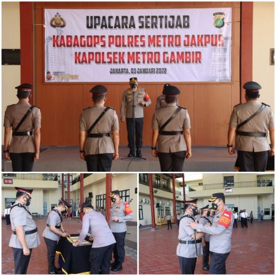 Jakarta, Persindonesia.com Serah terima jabatan Kabag Ops dan Kapolsek Metro Gambir berlangsung hikmat di Lapangan Merah Mako Polres Metro Jakarta Pusat, Senin (03/01/2022).