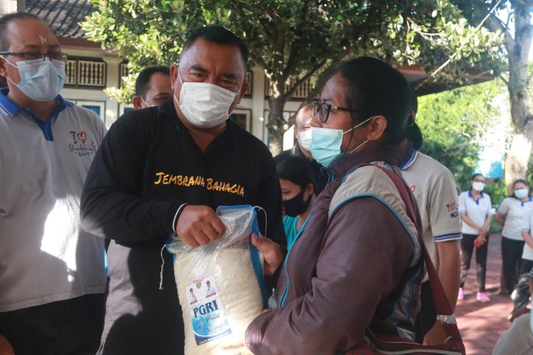 Persindonesia.com Jembrana – Masa pandemi dan PPKM Level IV di Wilayah Bali, Bupati Jembrana I Nengah Tamba terus melakukan upaya dengan mengajak pihak swasta dan pengusaha sukses lainnya untuk ikut bergotong royong dalam penanganan membantu warga kurang mampu terdampak. Termasuk bantuan dari PGRI yakni sebanyak 8,5 ton berupa beras, disalurkan kepada guru honorer dan wali murid kurang mampu di tiap sekolah.