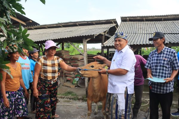 Bibit Sapi betina Jenis Sapi Bali ini diserahkan langsung oleh Bupati Jembrana I Nengah Tamba kepada Ketua Kelompok Tani Sari Merta bertempat di Banjar Peh, Desa Kaliakah, Kamis (15/6).