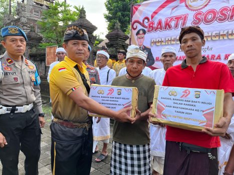 PersIndonesia.Com,Klungkung- Serangkian menyambut Hari Ulang Tahun (HUT) Bhayangkara ke-79 tahun 2025, Kepolisian Sektor (Polsek) Banjarangkan menggelar kegiatan Bakti Relegi sekaligus Bakti Sosial bertempat di Pura Agung Kental Gumi, Desa Tusan, Banjarangkan, Kamis 19 Juni 2025.