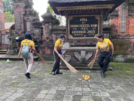Selain bakti relegi, lanjut Kapolsek pihaknya juga melaksanakan bakti sosial berupa pemberian bingkisan kepada pemangku pura dan pengayah (juru sapu di pura). Total ada 10 bingkisan yang diserahkan dalam kegiatan ini.