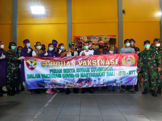 Kodam IX/Udayana melalui Kodim 1617 Jembrana sebagai peran membantu untuk mempercepat vaksinasi di wilayah Kabupaten Jembrana serta Bali Nusra. Didampingi Puksekmas 1 Negara serta Dinas Kesehatan Kabupaten Jembrana ini bahwa dan edukasi persuasif pentingnya masyarakat untuk vaksinasi.