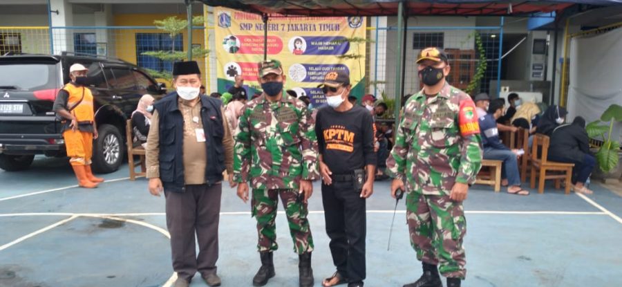 Dalam rangka serbuan Vaksinasi serta percepatan pemulihan Covid 19, Mayor Inf Dasiya Danramil 02/Matraman bersama jajarannya serta unsur tiga pilar melaksanakan kegiatan pengamanan Vaksinasi Nasional covid-19 kepada seluruh warga masyarakat Kecamatan Matraman dari usia 18 sampai dengan usia 59 tahun, bertempat di SMPN 07 Jln. Balai Rakyat RT.01/06 Utan Kayu Utara Matraman, Jumat (18/06/2021).