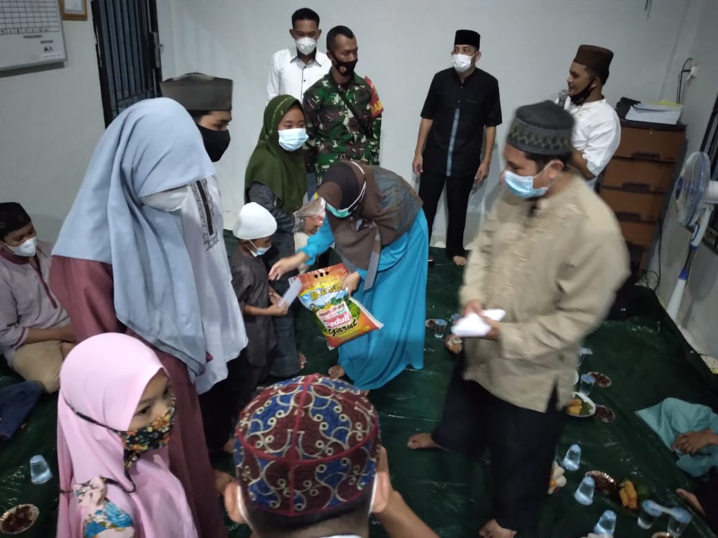 TEMBERAN — Personil Koramil 413-10/Bukit Intan Serda Joko W, Kamis 29/04/2021 sekira pukul 17.30 sampai dengan selesai, menghadiri acara pemberian santunan kepada anak yatim.